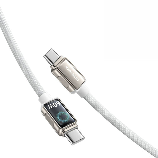 USB C to USB C 60W Zinc Alloy Braided White Fast Data Charging Cable VD-DC11CC