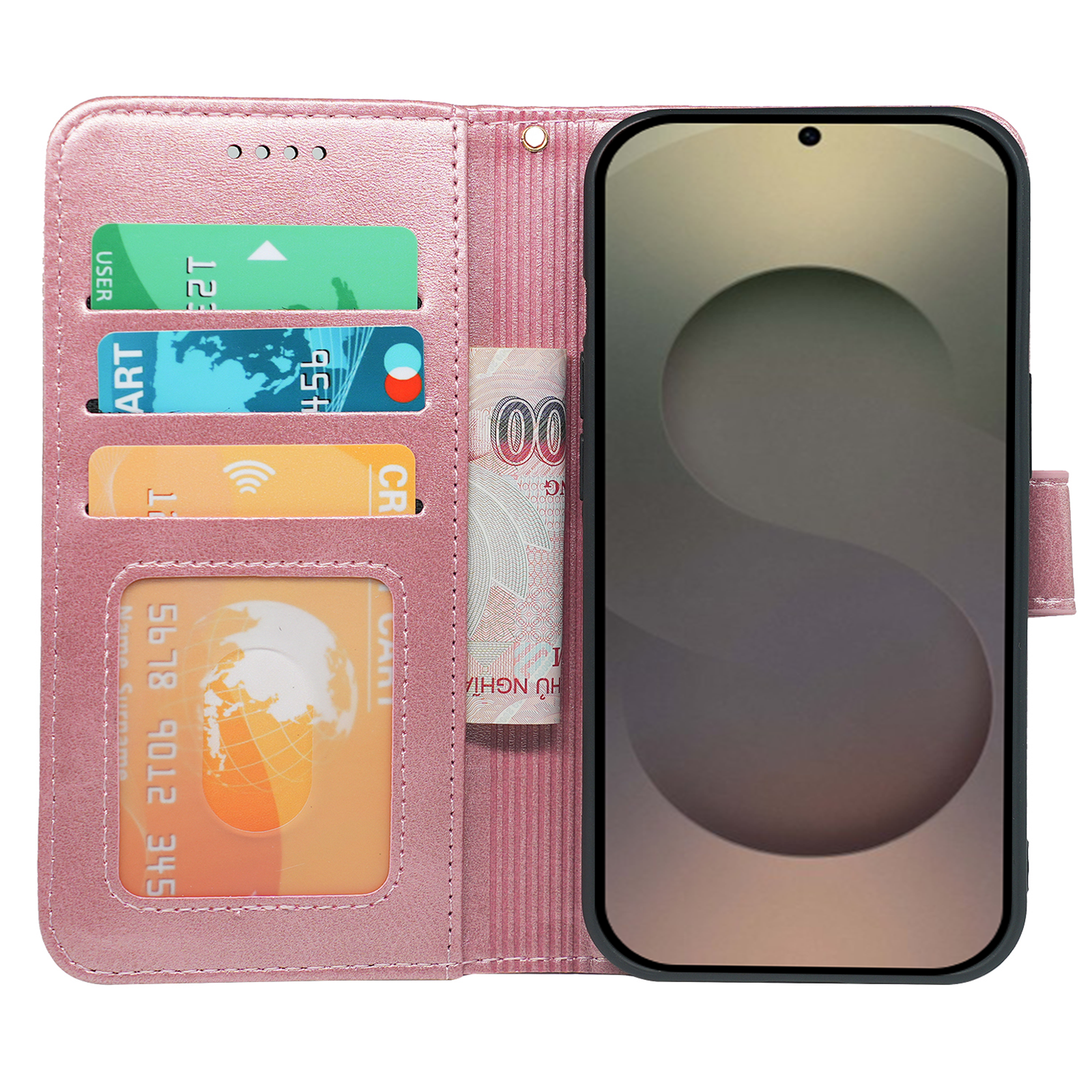 Crafted from high-quality PU leather, this Samsung Galaxy phone case offers full front and back coverage to guard against scratches, drops, and wear. The magnetic flap keeps your phone securely closed, while the built-in card slots allow you to carry essentials like your ID or credit cards.